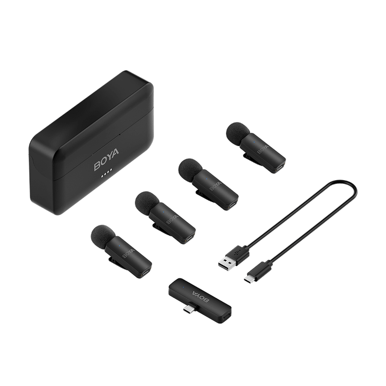 میکروفون مینی بی سیم 4 کاناله BY-V4 یک سری میکروفون بی سیم قابل حمل 4 کانالی است که تا 4 میکروفون را به طور همزمان پشتیبانی می کند. با حذف نویز دوگانه، BY-V4 می تواند صداهای با کیفیت بالا را ضبط کند. علاوه بر این، با تلفنها، تبلتها و دوربینها با آداپتورهای موجود در بسته کار میکند. ویژگی های کلیدی - پشتیبانی از ضبط 4 میکروفون به طور همزمان جفت شدن خودکار برای plug-and-play - حذف نویز دوگانه: فناوری حذف نویز با یک کلیک BOYA Audio و شیشه جلو برای ضبط صدای واضح در محیط های پر سر و صدا - TX دارای یک گیره چرخان و یک کپسول داخلی همه جهته است که امکان دریافت صدا در 360 درجه را فراهم می کند. - ضبط 16 بیتی SNR 80dB و 48 کیلوهرتز برای ضبط صدای بهتر از CD. 120dB SPL برای جلوگیری از اعوجاج و برش - فرکانس دیجیتال 2.4 گیگاهرتز با برد انتقال تا 200 متر در فضای باز - کیس شارژ قابل حمل با عمر باتری تا 18 ساعت برای نسخه های UC/DI و تا 12 ساعت برای نسخه RX3.5