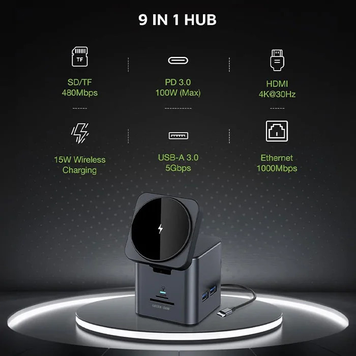 هاب 9 پورت و شارژر بی سیم گرین لاین مدل Docking Station