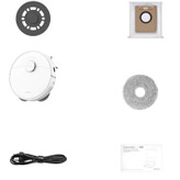 ایستگاه پایه - کیسه جمع آوری گرد و غبار -پد موپ ۲ عدد - براش اصلی - نگهدارنده موپ پد - راهنمای کاربری - سیم برق - برس جانبی