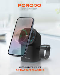 ایستگاه شارژ Porodo Auto Rotate and Slide Qi2 MagSafe یک راه حل مدرن شارژ برای دستگاه های مدرن است. می تواند تحت ورودی DC 9V/3A یا 12V/2.5A کار کند و دارای رابط شارژ Type-C است. مصرف انرژی کارآمد را برای دستگاه های شما ارائه می دهد. این ایستگاه با توان خروجی 15 وات برای گوشی ها، 2.5 وات برای هر هدفون و سایر دستگاه های هوشمند کار می کند و امکان شارژ همزمان آنها را فراهم می کند. این دارای یک طراحی ثبت اختراع با یک سیستم شارژ مدولار خودکار اسلاید است که به کاربران امکان می دهد تنظیمات بدون درز را در طول مسیر برای قرارگیری بهینه دستگاه های خود انجام دهند. زوایای دید منعطف آن را برای تماشای ویدیو یا تماس های ویدیویی عالی می کند. این چیزی است که می توانید در خانه، محل کار یا حتی در حال حرکت داشته باشید زیرا عملکرد، ظاهر و تطبیق پذیری را به خوبی ترکیب می کند. شارژر Porodo واقعا یک لوازم جانبی ایده آل برای یک متخصص است.