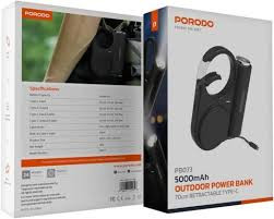 Porodo 5000mAh Outdoor Power Bank in UAE | 70cm Retractable Type-C Cable Length - Black Colo